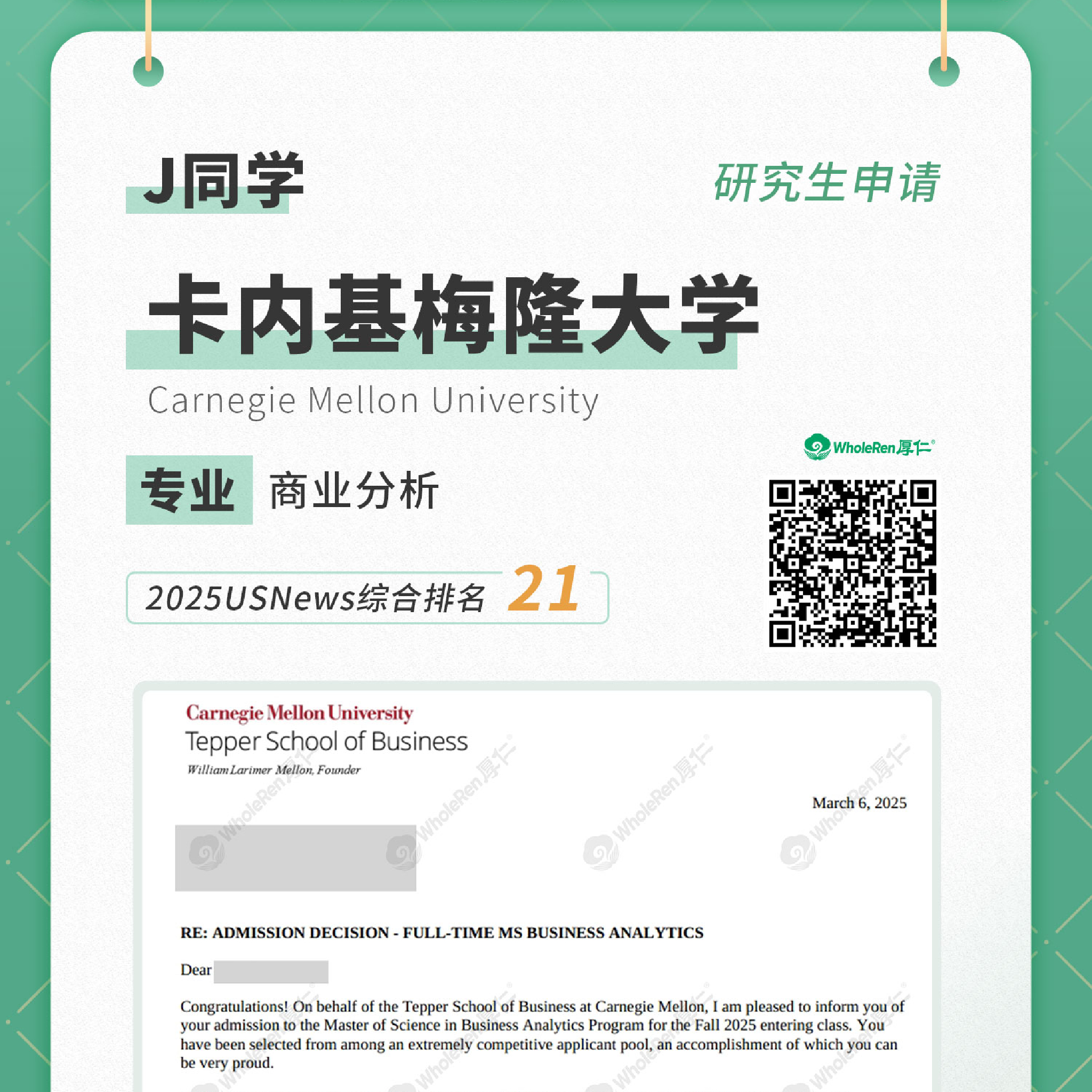 研究生申请-J同学录取CMU卡内基梅隆大学-商业分析