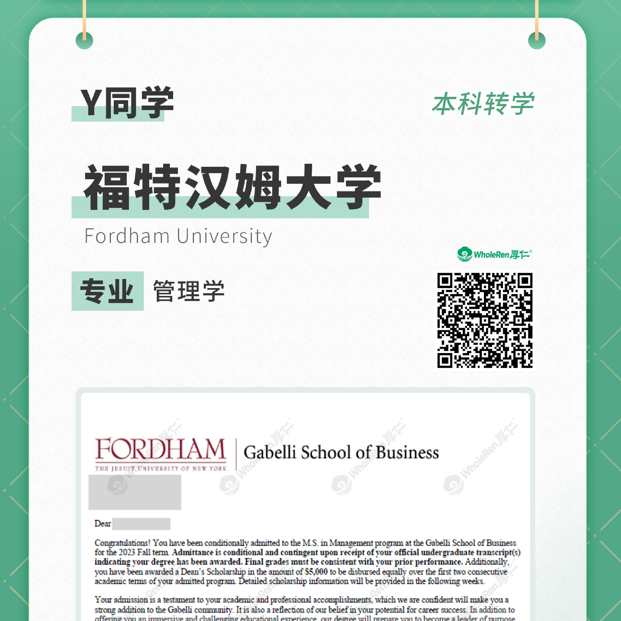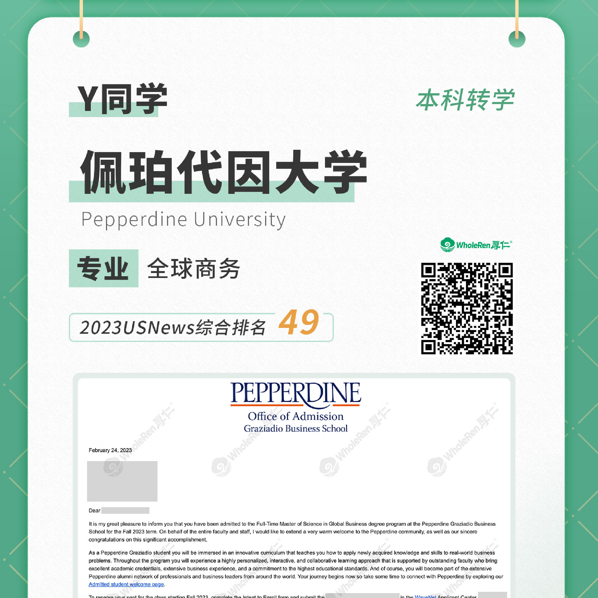 本科转学-Y同学录取佩珀代因大学-全球商务