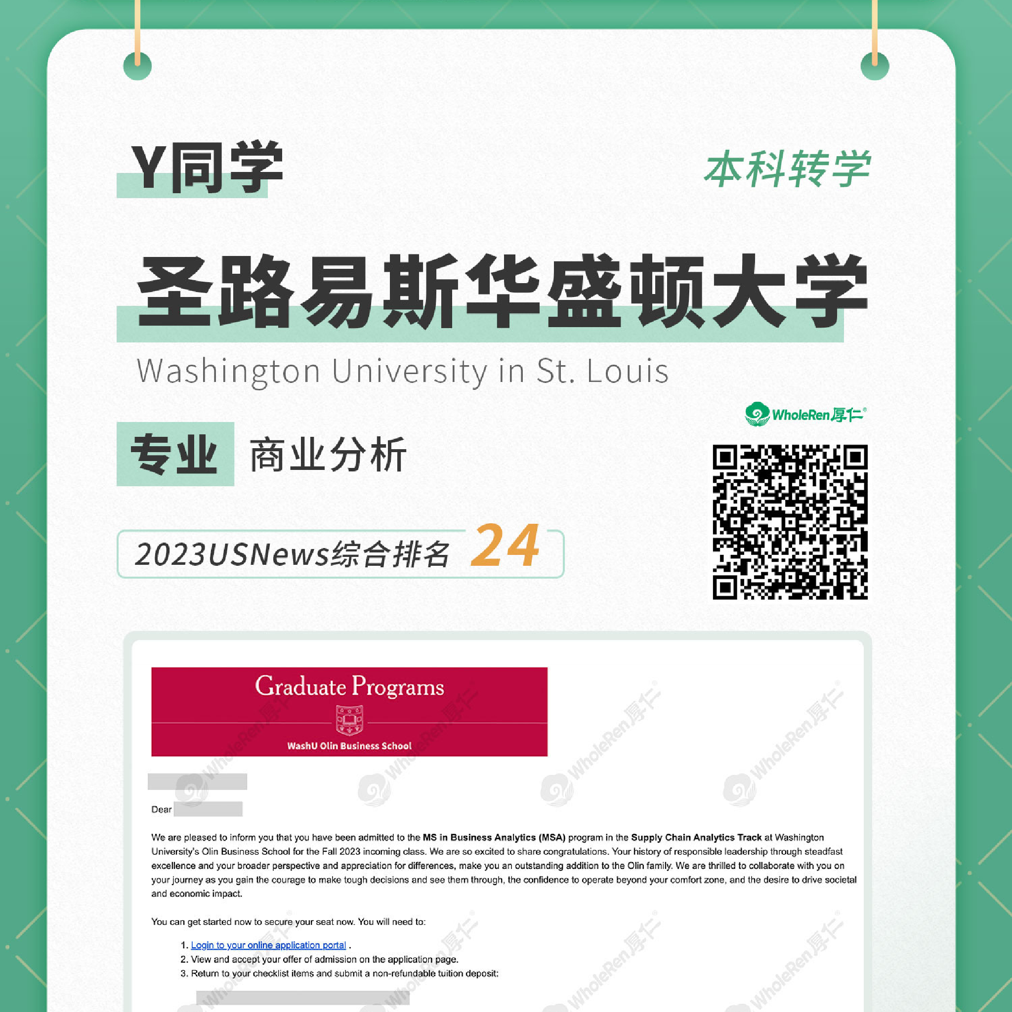 本科转学-Y同学录取WASHU圣路易斯华盛顿大学-商业分析