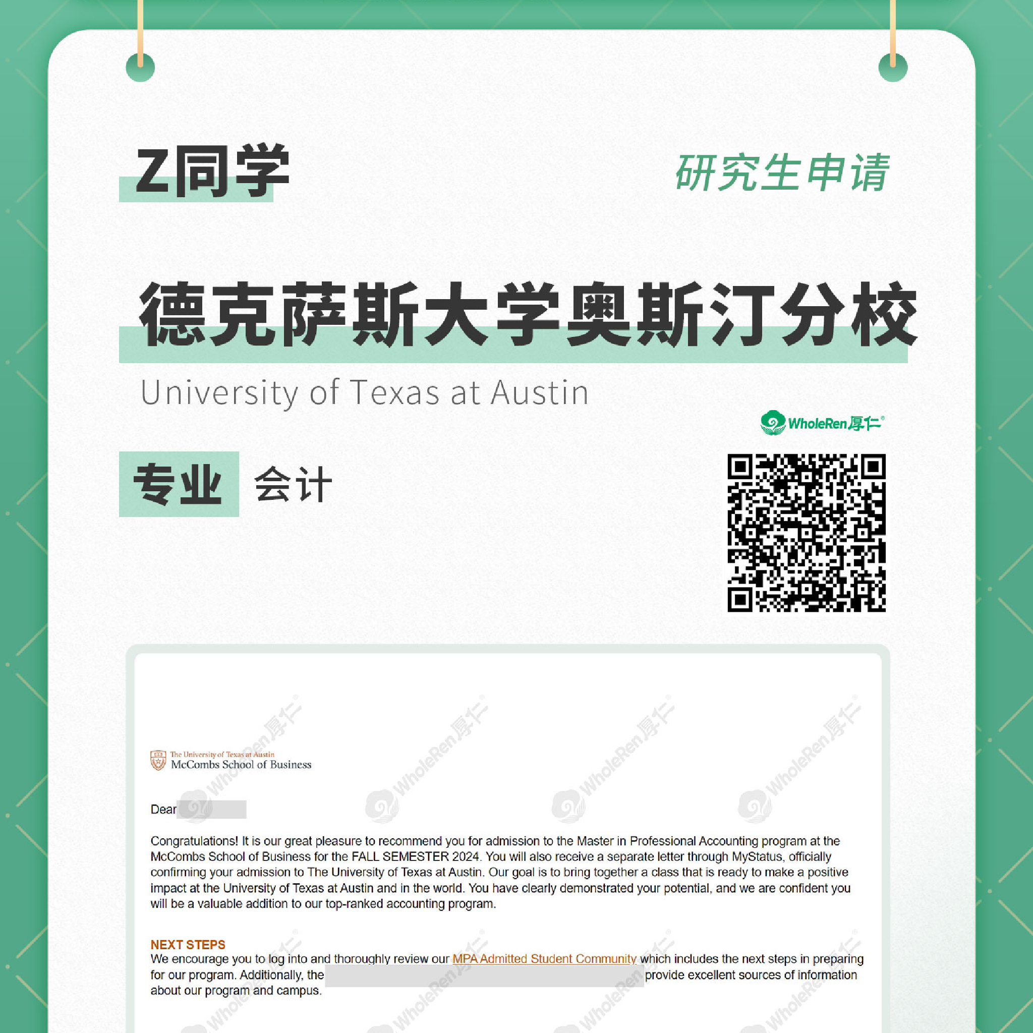 研究生申请-Z同学录取德克萨斯大学奥斯汀分校-会计