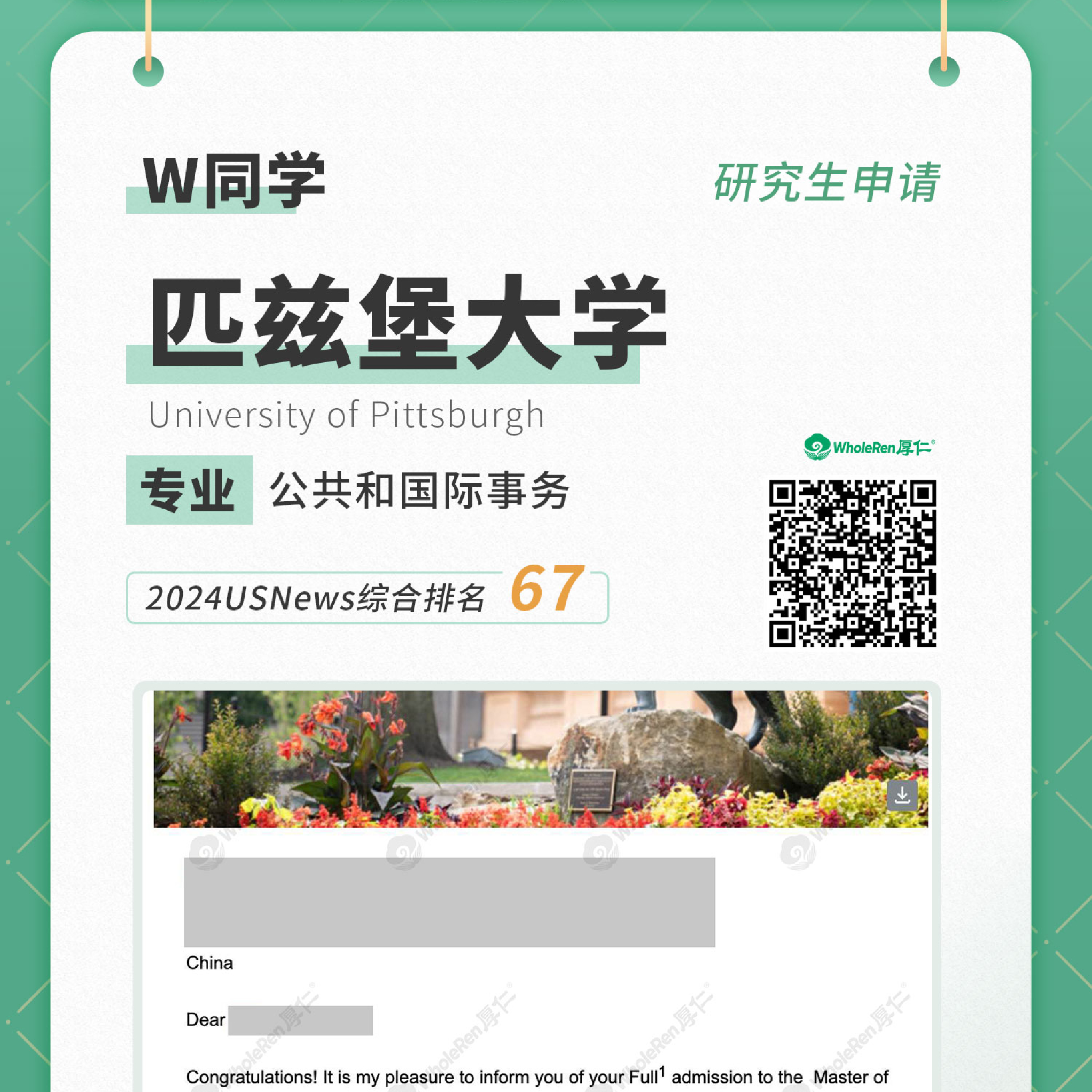 研究生申请-W同学录取匹兹堡大学-公共和国际事务
