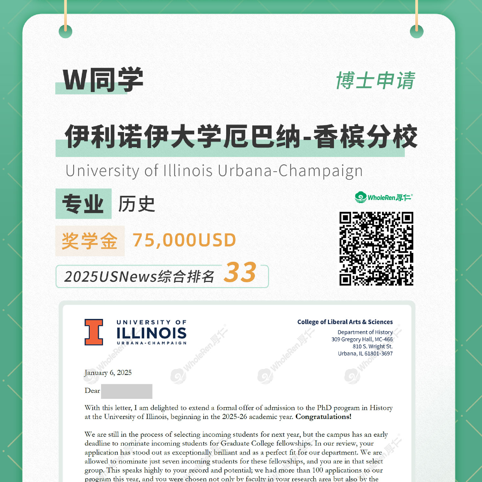 博士申请-W同学录取UIUC伊利诺伊大学厄巴纳-香槟分校-历史