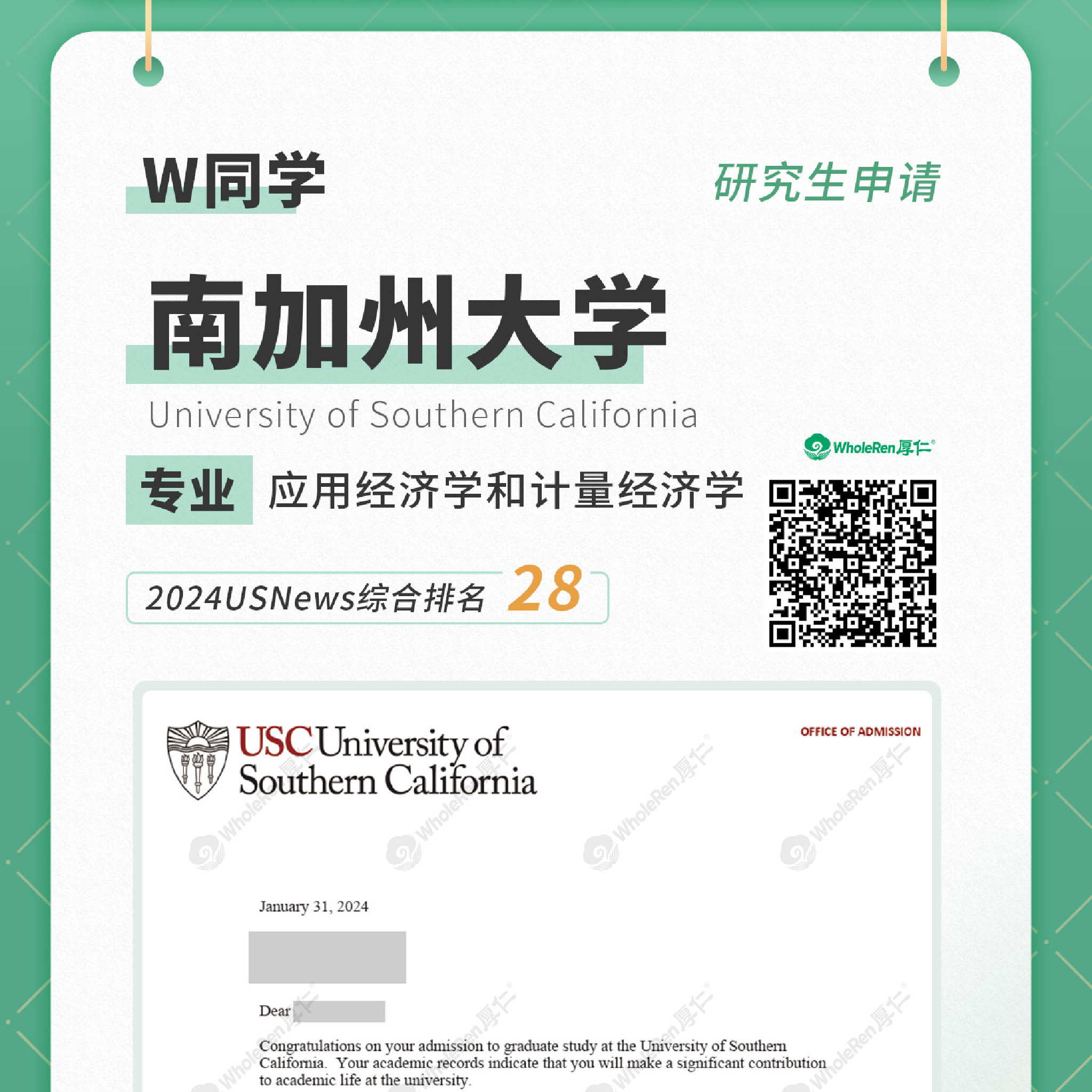 研究生申请-W同学录取USC南加州大学-应用经济学和计量经济学