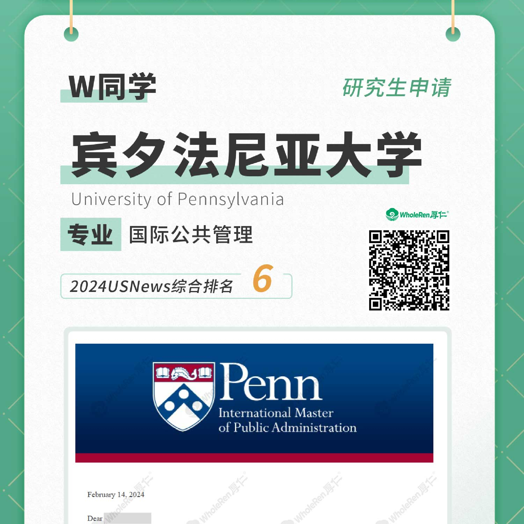 研究生申请-W同学录取UPenn宾夕法尼亚大学-国际公共管理