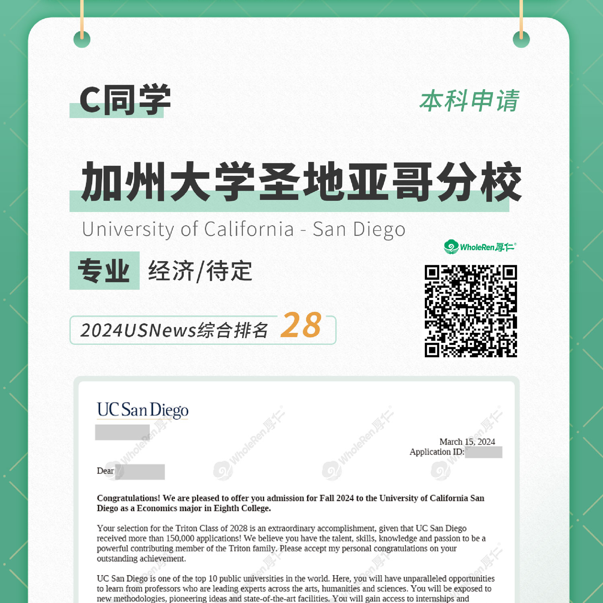 本科申请-C同学录取UCSD加州大学圣地亚哥分校-经济/待定