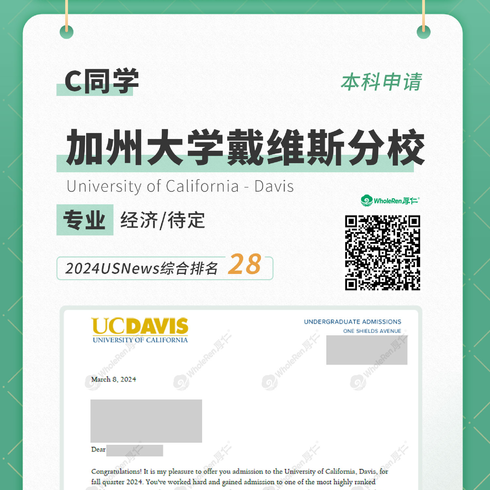 本科申请-C同学录取UCD加州大学戴维斯分校-经济/待定