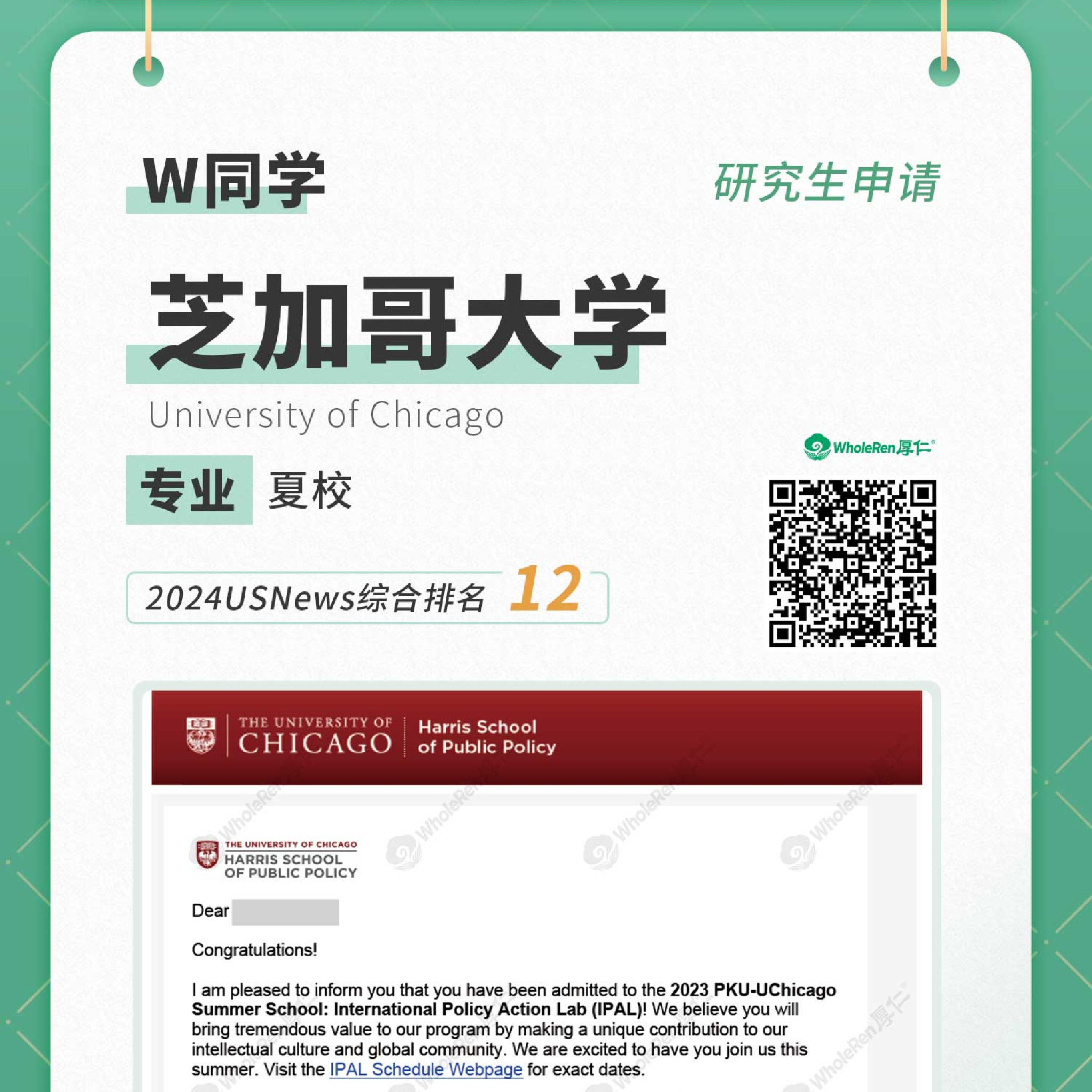 研究生申请-W同学录取芝加哥大学-公共政策(MPP)
