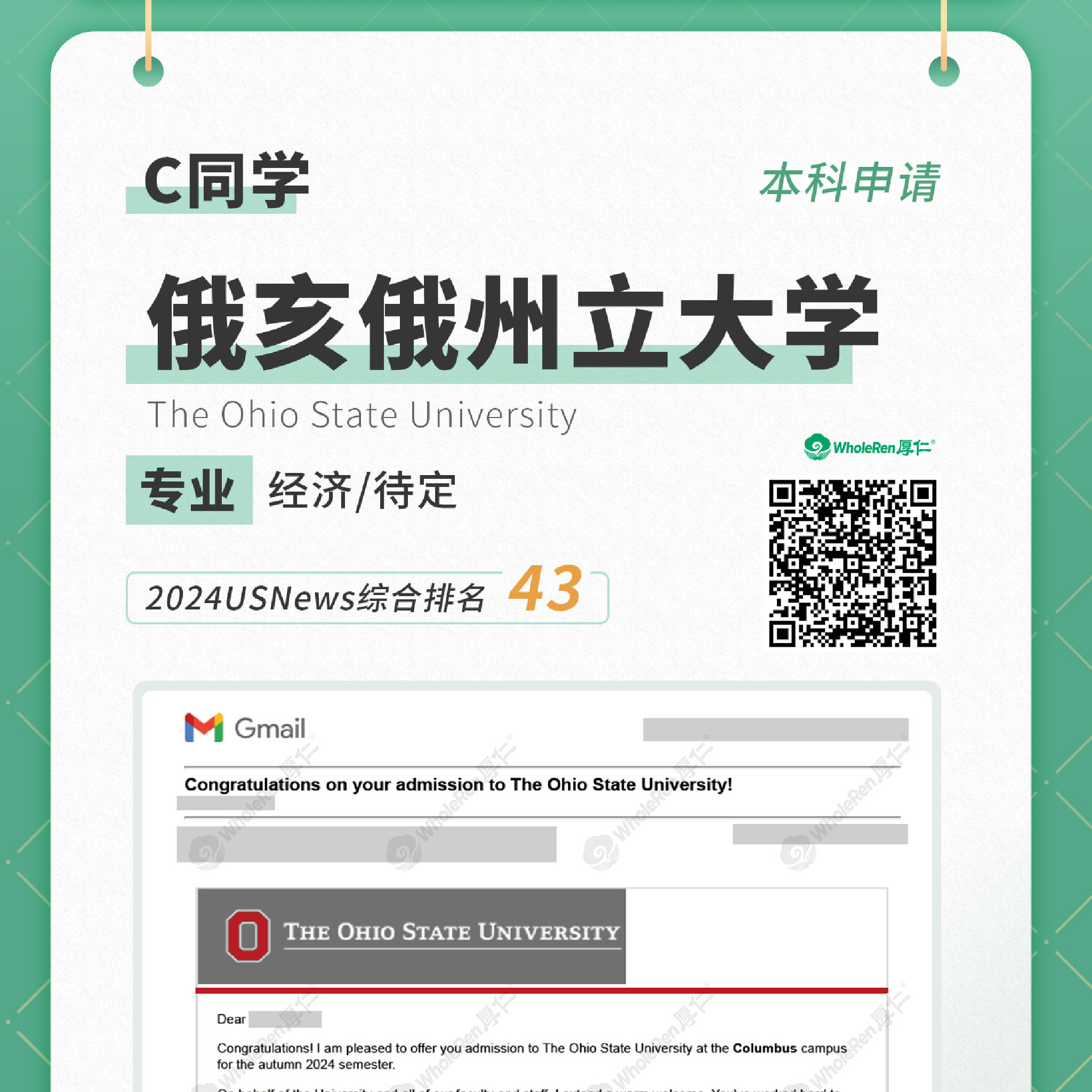 本科申请-C同学录取俄亥俄州立大学-经济/待定