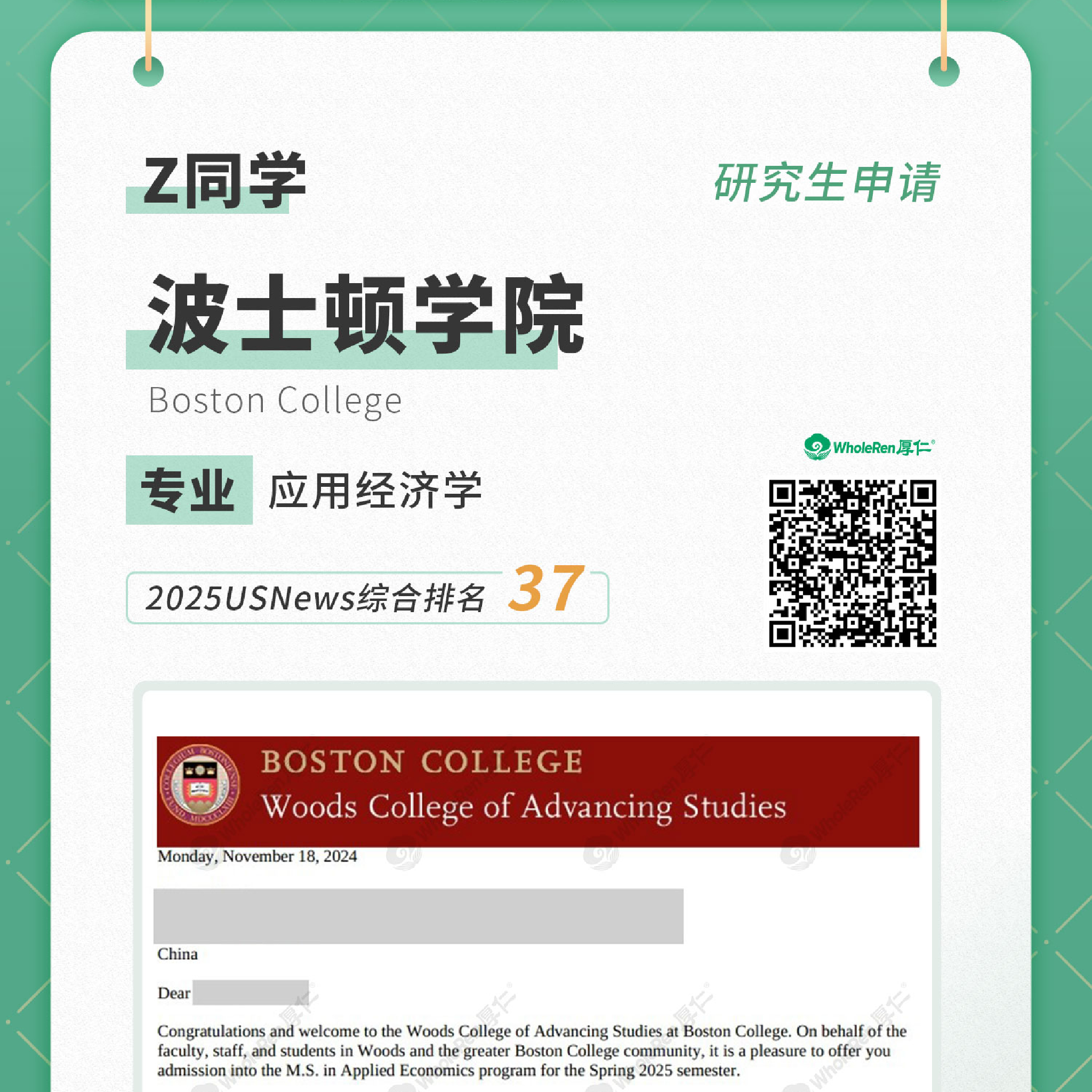 研究生申请-Z同学录取波士顿学院-应用经济学