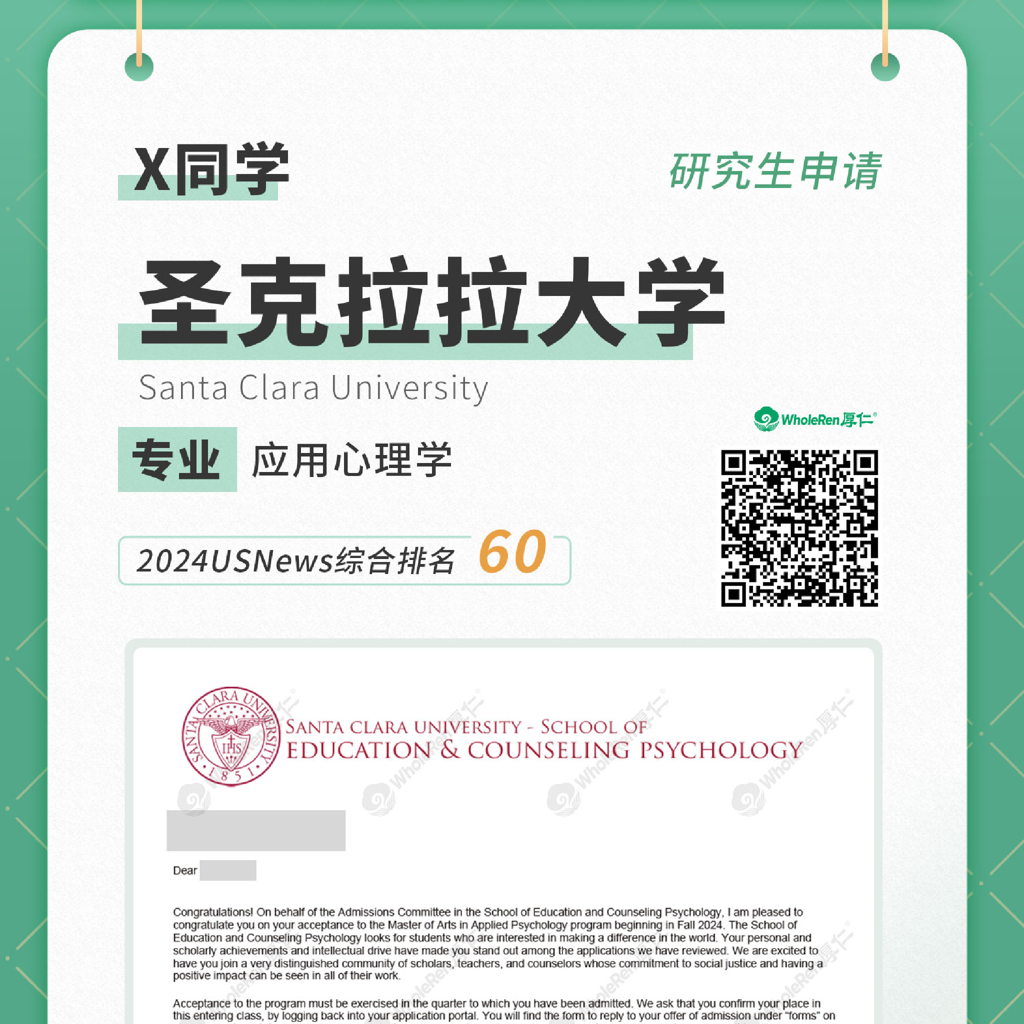 研究生申请-X同学录取圣克拉拉大学-应用心理学